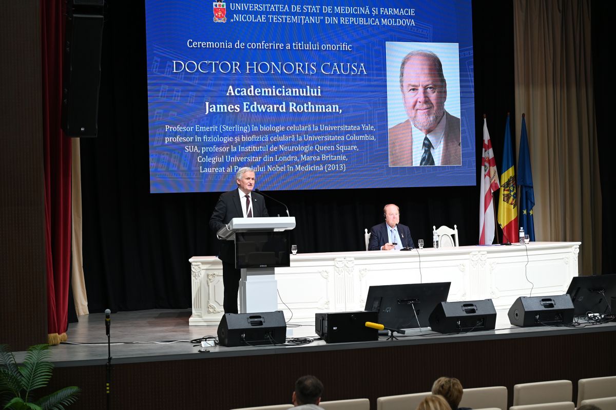 Universitatea de Stat de Medicină și Farmacie „Nicolae Testemițanu”din Republica Moldova i-a conferit titlul onorific Doctor Honoris Causa academicianului James Edward Rothman – personalitate remarcabilă în domeniul biologiei moderne, Profesor Emerit (Sterling) în biologie celulară la Universitatea Yale, profesor în fiziologie și biofizică celulară la Universitatea Columbia, SUA, profesor la Institutul de Neurologie Queen Square, Colegiul Universitar din Londra, Marea Britanie, Laureat al Premiului Nobel în Medicină (2013).